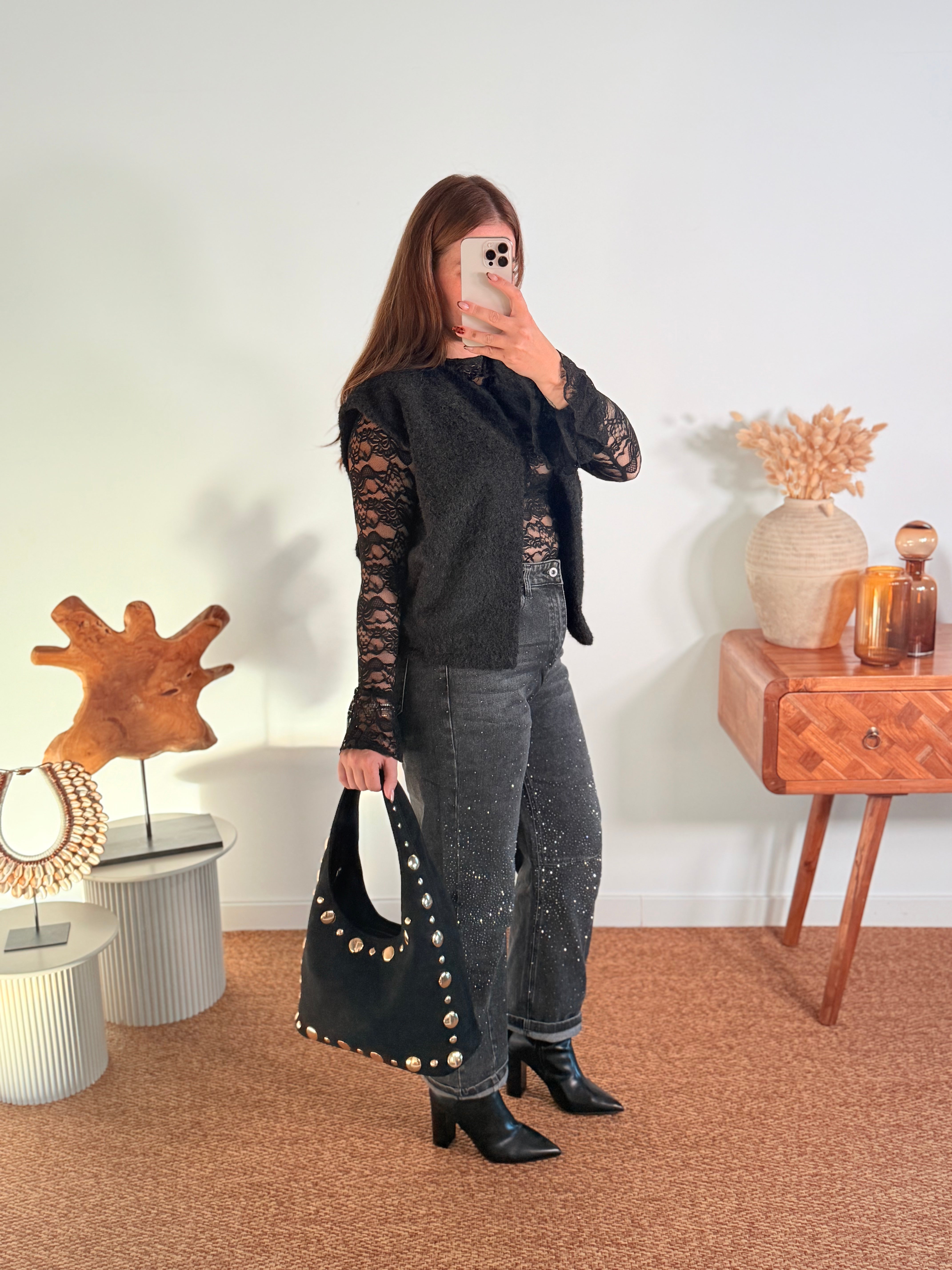 Le mannequin mesure 1m65 et fait une taille 38-40.